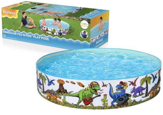Ten ogrodowy basen w krótkim czasie stanie się ulubionym miejscem do letniego odpoczynku i centralnym miejscem do dziecięcych zabaw. Ciekawa grafika dinozaurów z pewnością przyciągnie uwagę każdego dziecka. Został zaprojektowany tak, aby zachęcić dzieci do ruchu oraz wspólnej wakacyjnej zabawy. Dzięki swoim wymiarom idealnie nadaje się dla dzieci w wieku od 2 lat. Basen jest bardzo łatwy w montażu oraz demontażu do jego złożenia nie będziesz potrzebował żadnych dodatkowych narzędzi. Jego dno wykonane jest z wytrzymałego materiału winylowego, natomiast ściany z materiału PVC, dzięki czemu basen jest solidny i odporny na uszkodzenia.