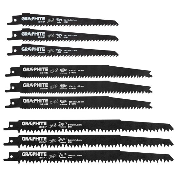 Brzeszczoty do piły szablastej, HCS, 150 x 19 x 1.25 mm/6TPI, 200 x 19 x 1.25 mm/6-10TPI, 240 x 19 x 1.5 mm/5TPI, zestaw 3 szt.