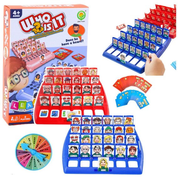 Mini gra „Kto to?" to wciągająca zabawa dedukcyjna dla dwóch osób, która rozwija logiczne myślenie, koncentrację oraz umiejętność zadawania trafnych pytań. Celem gry jest odgadnięcie, którą postać wylosował przeciwnik - poprzez eliminację niepasujących postaci na podstawie zadawanych pytań, takich jak: „Czy ma okulary?", „Czy ma blond włosy?", „Czy nosi czapkę?".
