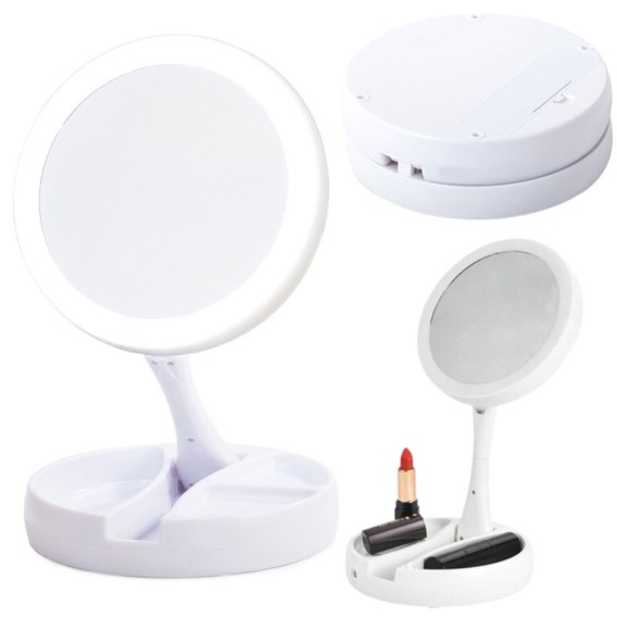 Lusterko Podświetlane LED Powiększenie 10x Regulowane Postawka Białe