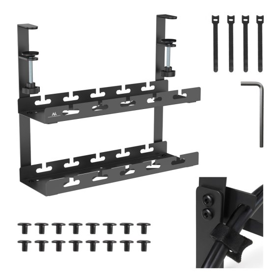 Organizer podbiurkowy na kable Maclean, max. obciążenie 5kg, 2 poziomy, czarny, MC-104 B