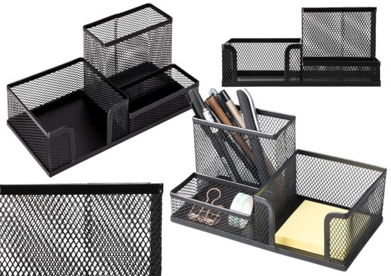 ✔️ Elegancki design - Nowoczesny wygląd organizeru pasuje do każdej przestrzeni roboczej, wprowadzając do niej styl i elegancję. ✔️ Funkcjonalność - 3 komory zapewniają łatwy dostęp do najważniejszych akcesoriów biurowych, a ich przestronność pozwala na przechowywanie nawet większej ilości drobiazgów. ✔️ Trwałość i stabilność - Wykonany z metalowej siatki organizer jest odporny na uszkodzenia, a jego solidna konstrukcja zapewnia długowieczność. ✔️ Wygodne przechowywanie - Kompaktowe wymiary sprawiają, że organizer zmieści się na każdym biurku, oszczędzając miejsce, a jednocześnie umożliwiając organizację przestrzeni.
