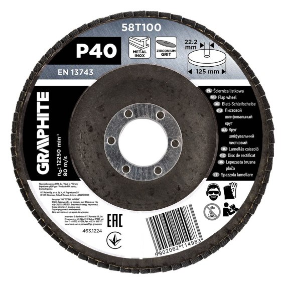 Ściernica listkowa cyrkonowa 125 x 22.2 mm, P40