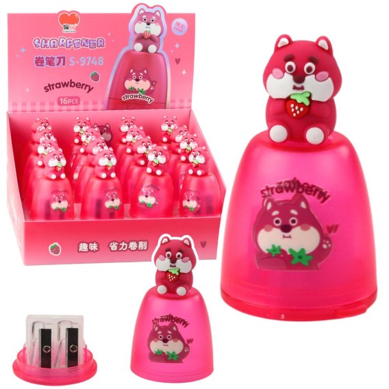 Różowa funkcjonalna temperówka z motywem uroczego zwierzaka to doskonałe akcesorium do piórnika każdego dziecka. Strugaczka posiada dwa otwory, co pozwala na wygodne temperowanie zarówno cienkich, jak i grubych kredek.