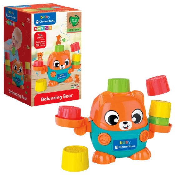 Zabawka edukacyjna inspirowana metodą Montessori, w której ramiona misia pełnią funkcję wagi, a dziecko może układać na niej kolorowe pniaki-kubeczki. Poprzez zabawę maluch uczy się podstawowych pojęć związanych z masą, równowagą i proporcjami.