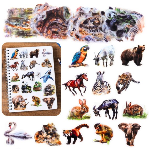 50 sztuk naklejek z motywami dzikich zwierząt