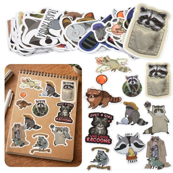 Zestaw Naklejki Z Szopem Dekoracyjne Różne Motywy 50 szt. 7-8 cm