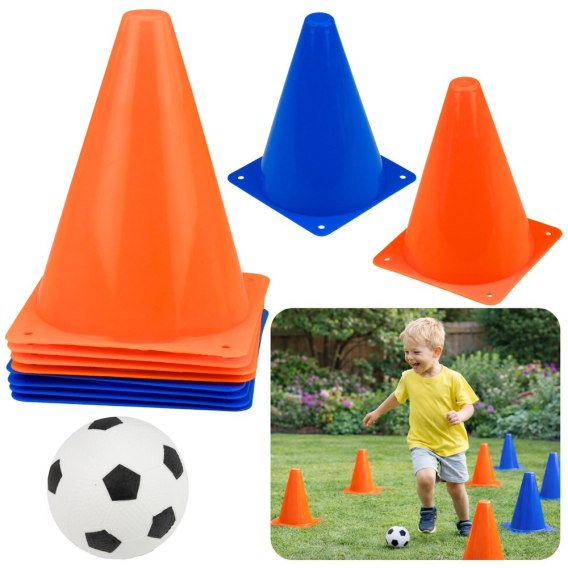 Zestaw pachołków treningowych z piłką to doskonała propozycja do aktywnej zabawy na świeżym powietrzu oraz w domu. Kolorowe elementy w intensywnych barwach pomarańczowej i niebieskiej zachęcają do ruchu i ułatwiają organizację ćwiczeń.