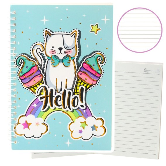 Zeszyt Notatnik W Linie Kot Jednorożec Lody Tęcza Turkusowy A5 60 Kartek